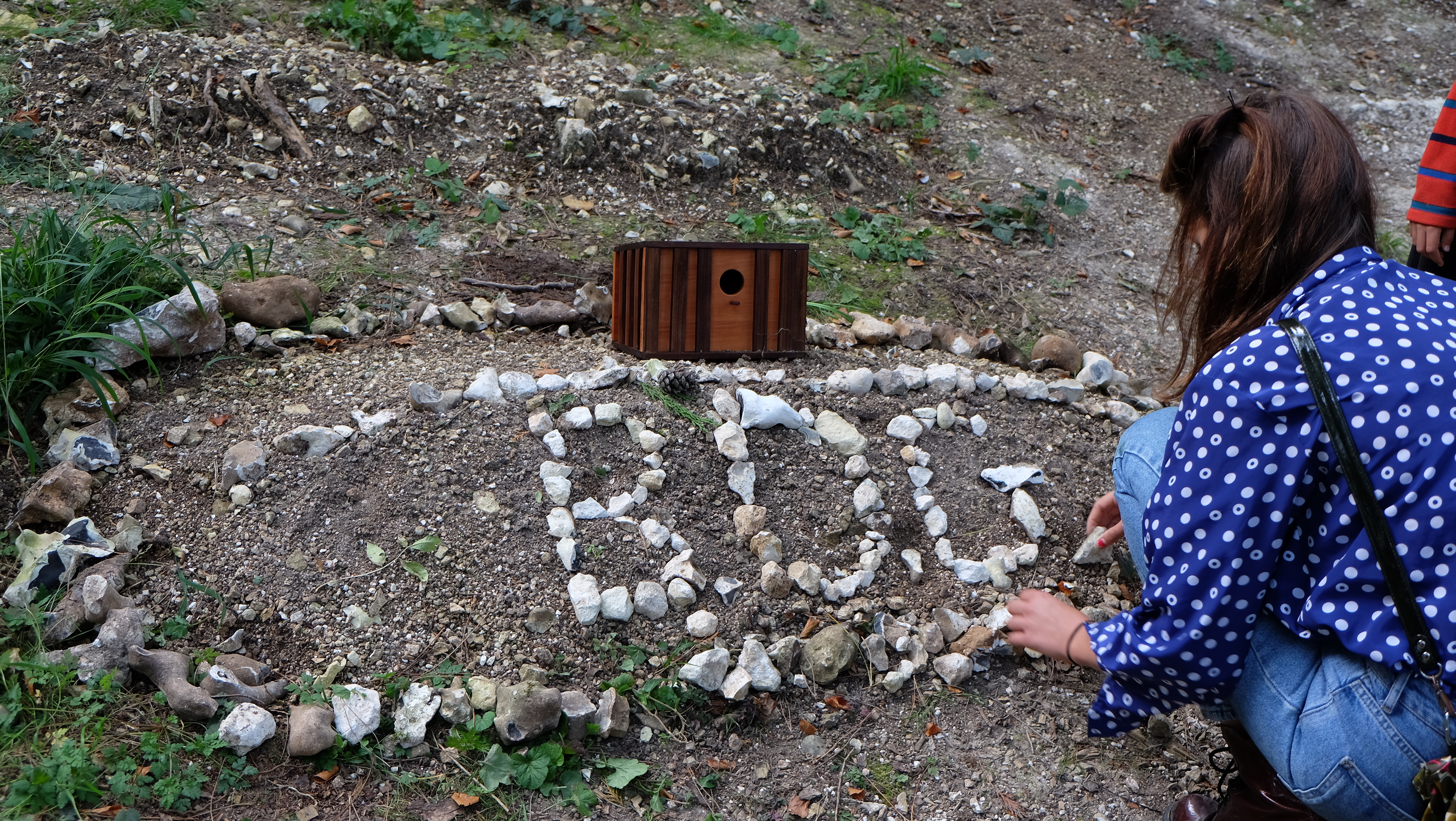 We found him and set about clearing the weeds and decorating his grave. Bastien acquired a new spine, a good, strong one fashioned out of flints. No more crumbling bones for this man!