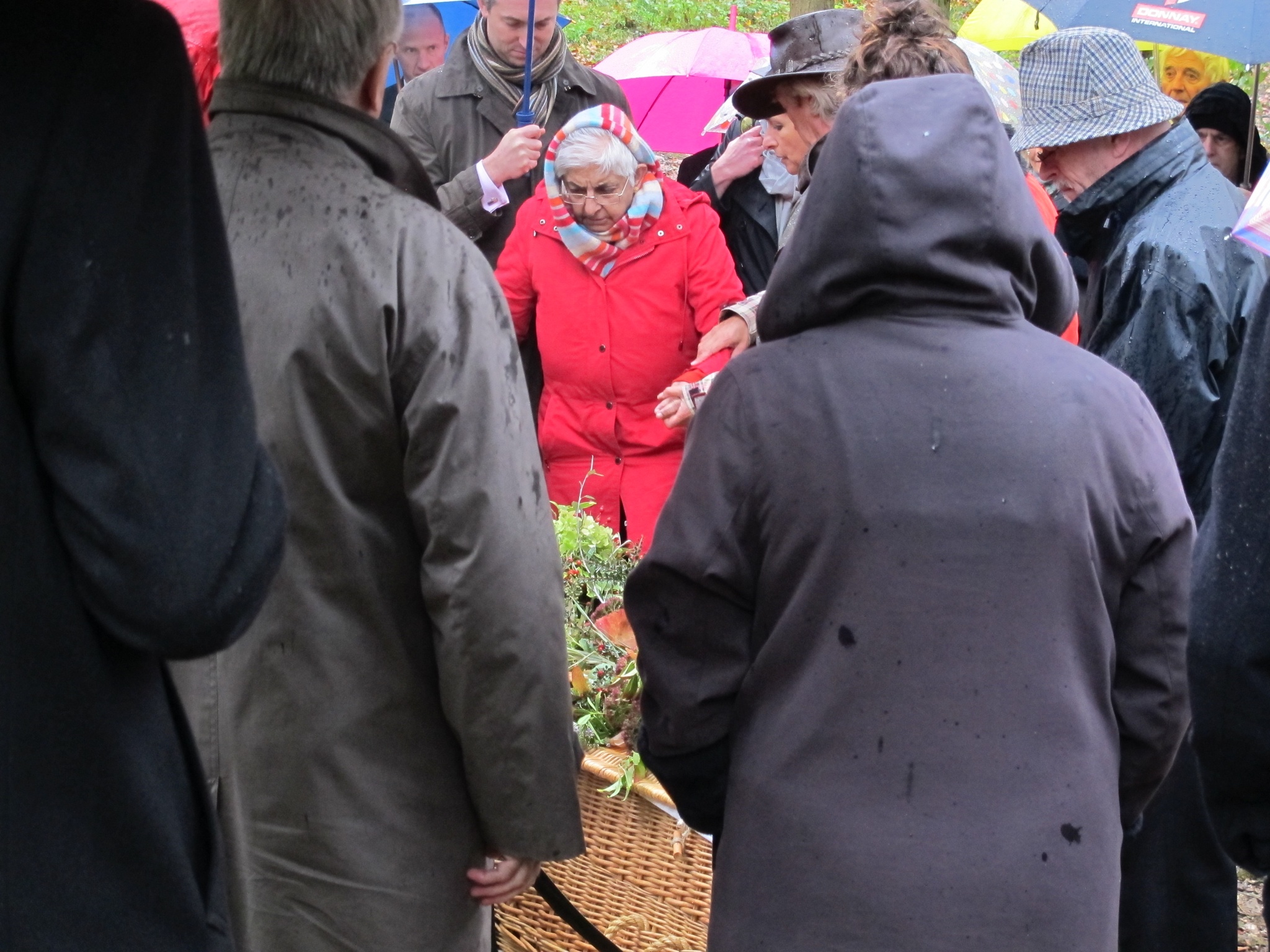 This visit was in stark contrast to our previous one. Last time was a cold, wet November day when around sixty of us travelled down the A3 to see the wicker basket that carried my father gently lowered into the chalk. Friends and family spoke warmly, Bastien’s youngest grandson played the fiddle, his oldest sang. Peter Lloyd Jones has kindly made his heart felt eulogy available and you can read it here.