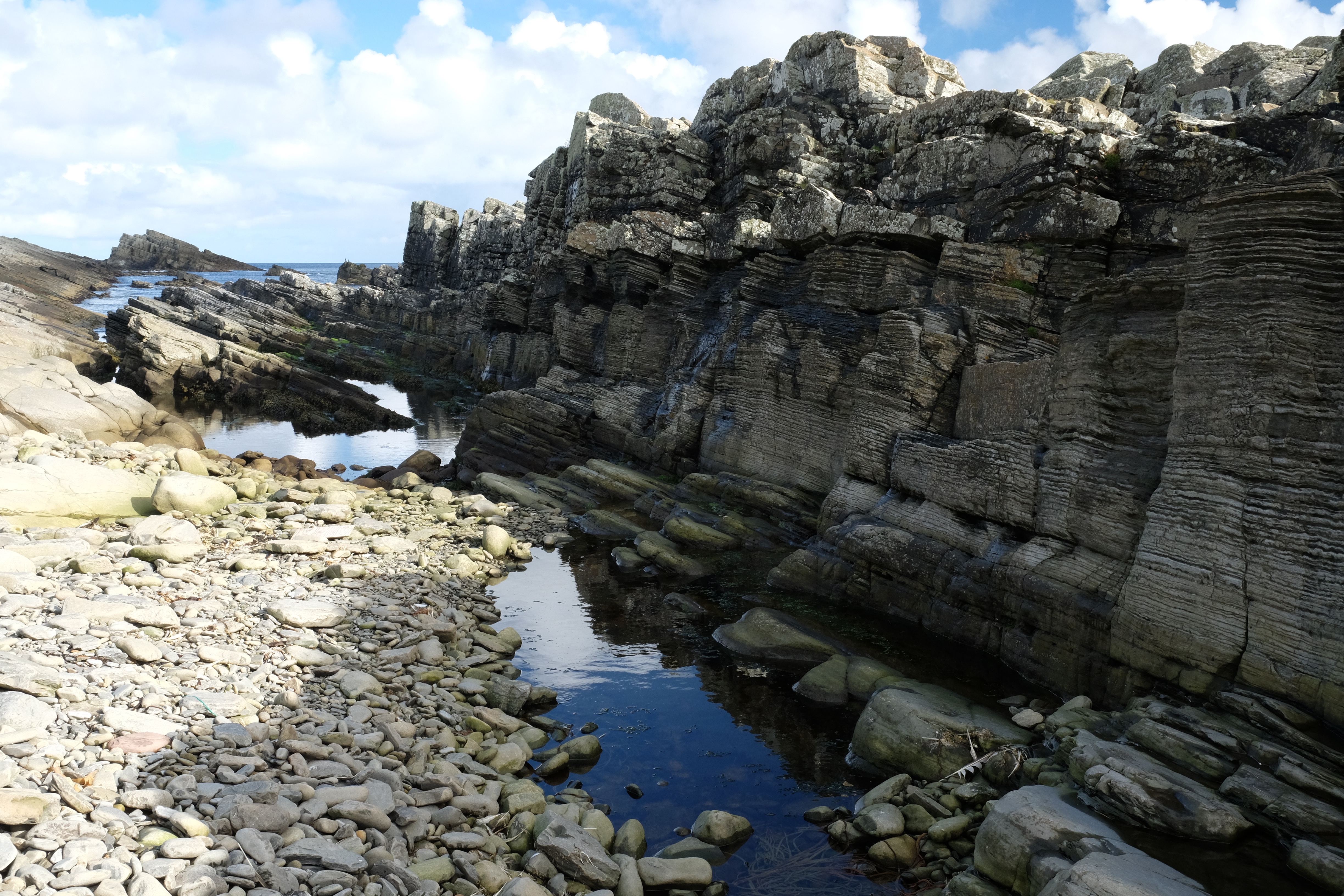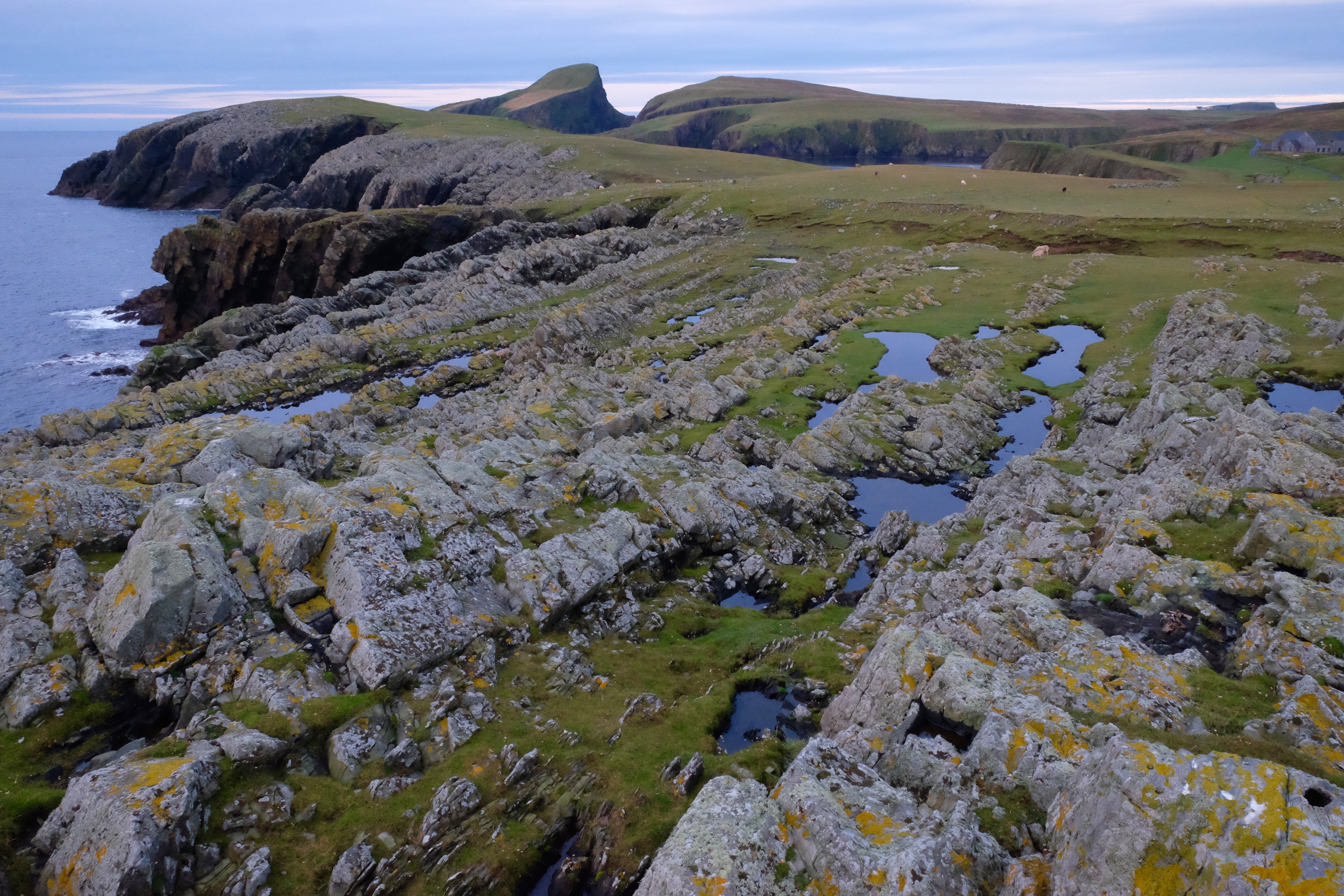 Hunting for petrified fish having dipped on the Thick Billed Warbler found at Quendale the evening before. This rarity pulled all the local birders and  left an audience of may be 4, plus the 8 of us for the Shetland bird club talk that 2 of our team were due give.