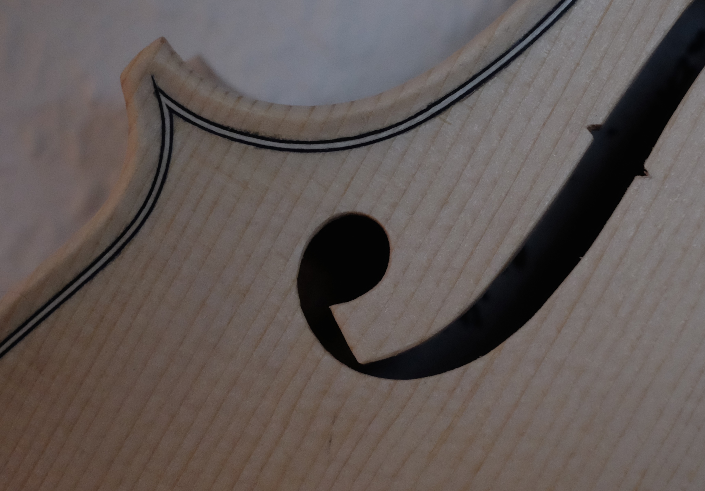 One day the teacher announced she was leaving and by way of farewell we took her out for a drink. I found myself sitting opposite Jonathan Woolston, a luthier. A few weeks later I went to visit him at his family home. A table tennis table occupied the greater part of his back room and on it, on its side, was a violin. ‘That one’s for sale’ Jonathan jokingly said as I picked it up. ‘You just sold it!’ I responded, astonishing myself as much as him. That was the biggest impulse purchase I have ever made, but my god was it was a good one. My children were still small; I had no idea whether either would have an interest in music let alone play the violin. I was a cellist! But now I was also the proud owner of Jonathan’s 5th violin. He had made it 20 years earlier but had left it ‘in the white’ unvarnished, as his mother had liked it that way. He had given the instrument to her and it had hung on her wall for many years and had only recently made its way back to him, to finish, after she had died.