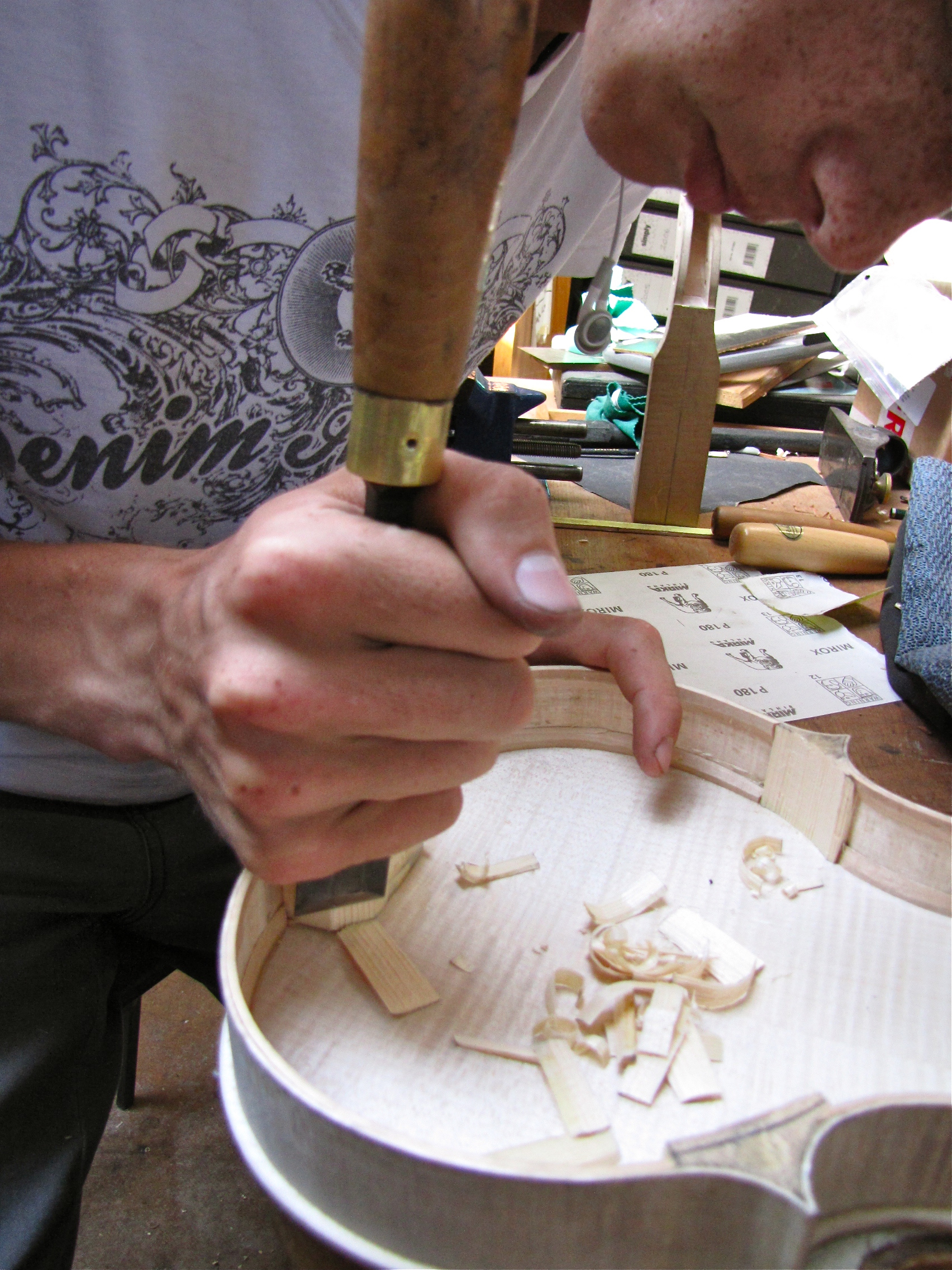 In his penultimate year at school, my son had to undertake an ‘extended’ project. Being a practical and creative lad, he decided he wanted to make a violin. Jonathan recommended that Fabian talk to Chris Beament, who runs the Cambridge Violin Workshop, located a few minutes away from Fabian’s VIth form college. Just over a year later, Fabian completed his first violin, and the price tag? It’s priceless needless to say!